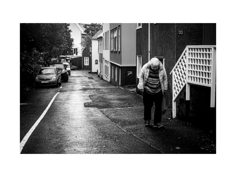 Con la testa bassa, cammina solo in una via deserta, un anziano il cui passo è lento e carico di sconforto. La città intorno a lui sembra distaccata, avvolta nel silenzio. Ogni passo è una lotta contro il tempo e la solitudine, una ricerca di un senso che si perde nell’isolamento di una vita che sembra svanire sotto il peso degli anni.