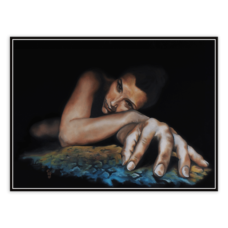 Un autoritratto che parla dell’attesa: quello stato di pace e ansia che si crea in situazioni di immobilità, come è stato il lockdown. L’attesa ci spinge a fermarci e a riflettere.