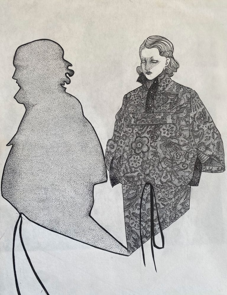 Questa opera in bianco e nero ritrae una modella durante la fashion week. La figura della ragazza è definita in modo dettagliato, con un’ombra accanto a lei, aggiungendo un elemento intrigante di dualità.Nel complesso, questa opera trasmette non solo la bellezza della moda, ma anche la complessità e la profondità dietro l’apparenza esteriore.