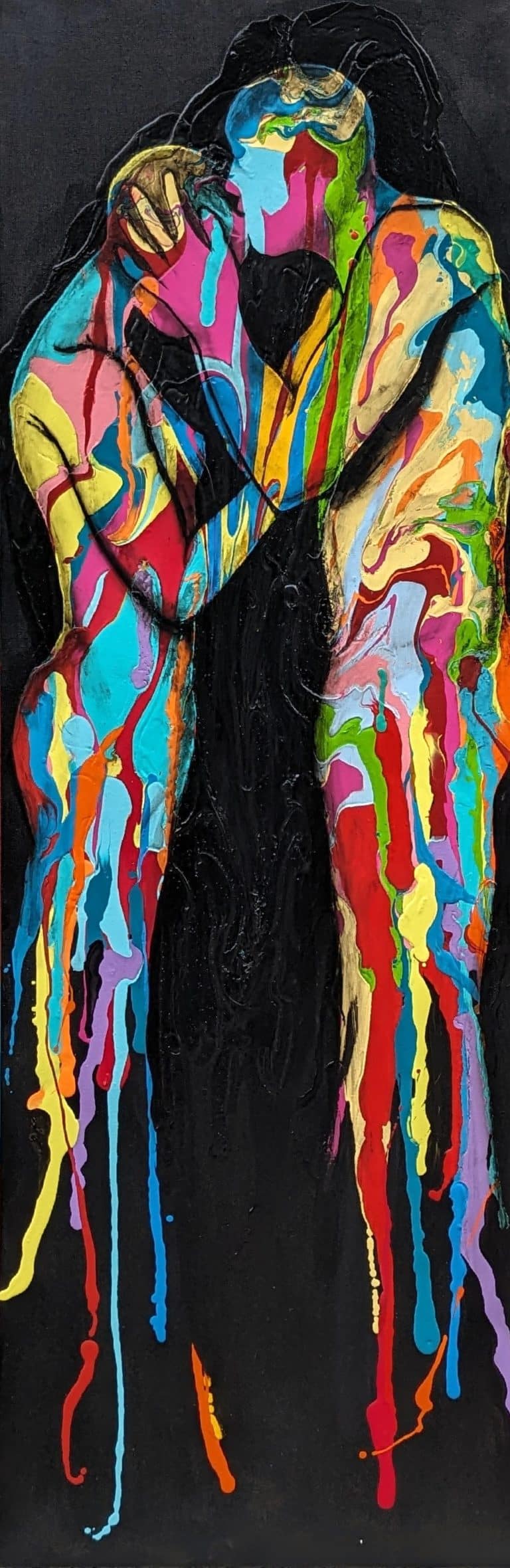Nella creazione di quest’opera, ho utilizzato acrilici e pigmenti per dare vita a un insieme figurativo pulsante di energia e colore. Ho cercato di intrecciare emozioni profonde, trasformando ogni pennellata in una narrazione visiva. Questa tela invita lo spettatore in un viaggio emotivo, esplorando la complessità dell’esperienza umana.