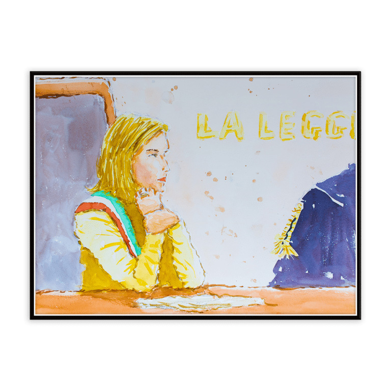 Una giudice popolare si tiene nervosamente il polso mentre assiste all’esame di un testimone.