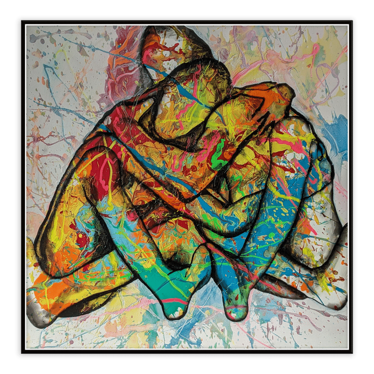 Need è una esplosione di colori e di arti che si contorcono e si intrecciano cercandosi in un bisogno urgente. Colori fluo , colori accesi. Questa tela vi stupirà perchè si vedrà anche di notte, anzi, illuminata con led blu rivelerà nuove sfumature e nuova energia. Una tela dalla doppia vita e doppia personalità.