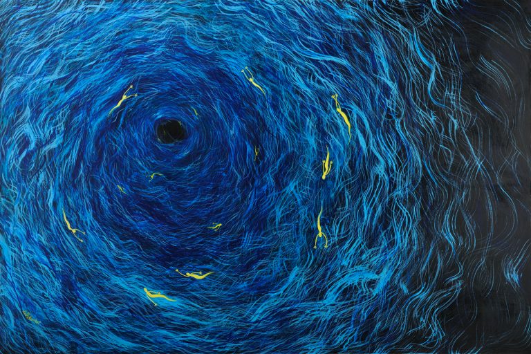 Strani esserini gialli si perdono in un vortice travolgente. E’ un po’ come vivere tra il giallo e il blu, a volte è facile perdersi.