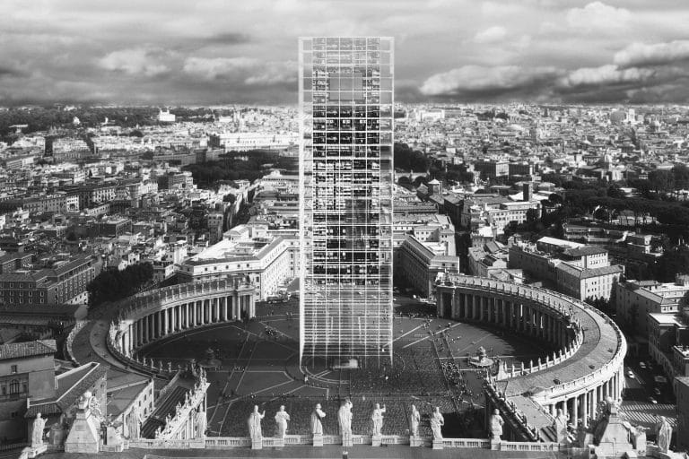 Proposta per la realizzazione di una torre residenziale ad alta densità abitativa posta al di sopra dell’obelisco vaticano e al centro della Piazza San Pietro (SCV).